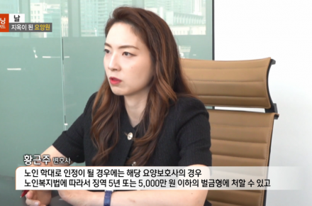 - 황근주 대표 변호사 [SBS 모닝와이드_10/1 방송][지옥이 된 요양원] 관련 법률적인 자문을 제공했습니다.
